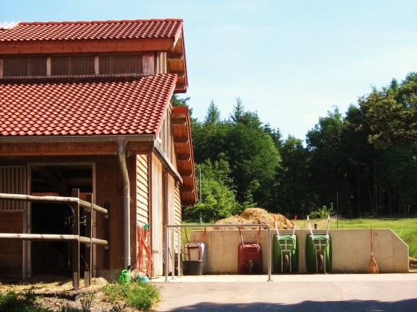 Ohne eine Straße überqueren zu müssen, kann man vom Hofgelände aus direkt durch das Hoftor in den Wald reiten. Das umliegende Gelände bietet vielfältige Möglichkeiten für einen schönen Ausritt oder eine gemütliche Kutschfahrt. Es gibt viele ruhige Wald- und Feldwege sowie Aussichtsstellen, bei denen man bei schönem Wetter einen traumhaften Blick auf den Bodensee und die Alpen hat.